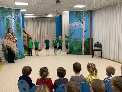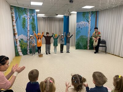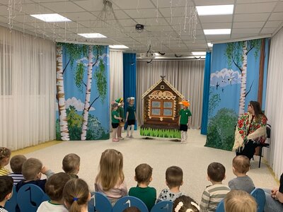 Стало уже доброй традицией проводить показы театральных постановок детьми старших групп для малышей. Вот и сегодня в День театра воспитанники старших и подготовительных групп показывали сказки малышам. Дети с радостью перевоплощались в героев сказок и инсценировали отрывки любимых произведений. Ребята смогли показать свои театральные способности, передавая эмоции сказочных героев, детям младших групп .