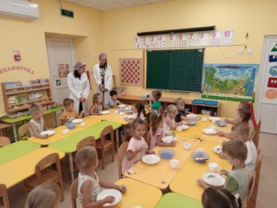 В правильной организации питания детей большое значение имеет создание благоприятной и эмоциональной окружающей обстановке в группе. Группы обеспечены соответствующей посудой, удобными столами. Воспитатели приучают детей к чистоте и опрятности при приеме пищи. Организация питания находится под постоянным контролем у администрации детского сада. Создание отдельного меню для инвалидов и лиц с ограниченными возможностями здоровья не осуществляется. Инвалидам, лицам с ограниченными возможностями здоровья, детям-сиротам, детям, лишенным родительского попечения и детям с туберкулезной интоксикацией питание предоставляется бесплатно. В соответствии со ст. 41 Федерального закона от 29.12.2012 № 273-ФЗ "Об образовании в Российской Федерации" в МБДОУ созданы условия для охраны здоровья обучающихся. В образовательном учреждении с целью охраны здоровья воспитанников проводятся следующее мероприятия: